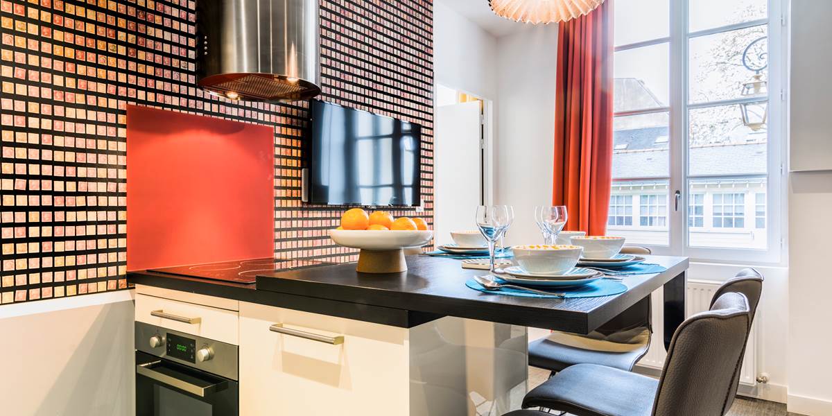 Dans cette maison très particulière au décor personnalisé qui vous fera découvrir une autre idée du luxe, se situe cet appartement au rdc comprenant deux pièces. Mot de passe: Fornasetti , illustre décorateur auquel nous avons dédié cet appartement. La première des pièces est équipée d'une cuisine aménagée avec four multi-fonctions, plaques à induction, réfrigérateur-congélateur, lave vaisselle et partie snack avec quatre chaises hautes, et d'un canapé-lit convertible pour deux personnes (option supplément de 18 euros/ jour), smart tv 4k connectée. La deuxième pièce est la chambre avec Un lit pour deux adultes , une penderie, une salle d'eau avec deux vasques et large douche,sèche-serviettes, séchoir cheveux.